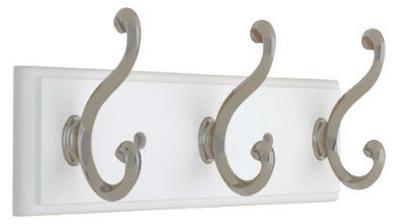 10", White, 3 Scroll Satin Nickel Hook, 3"L x 11.75"W x 5.5"H, Traditional Style, Carded.