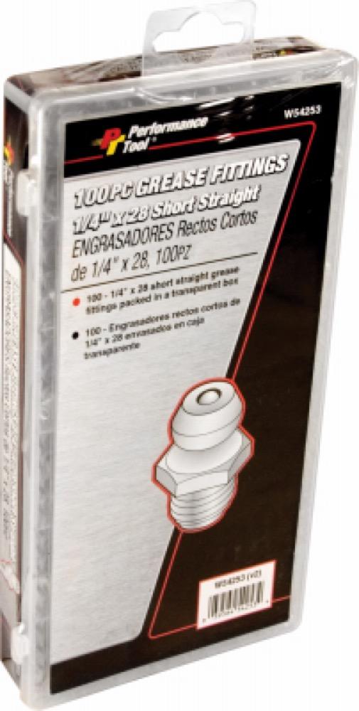 100 Pack, 1/4" x 28 Thread, Short, Straight Grease Fitting.