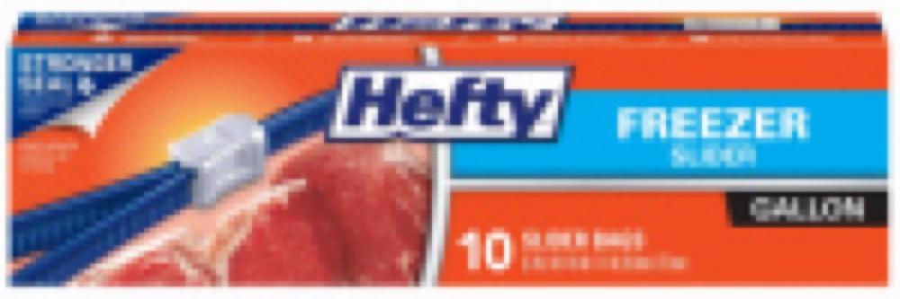 Hefty, 10 Count, Gallon, Slider Freezer Bag.