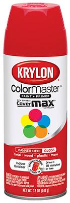 Colormaster, 12 OZ, Banner Red, Gloss, Spray Enamel, Interior/Exterior, Fast Dry, Use On Wood Or Metal.