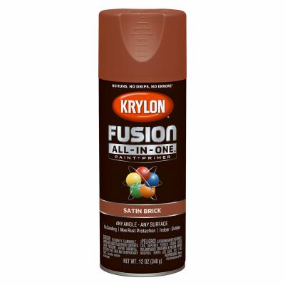 Fusion All-In-One, 12 OZ, Brick, Satin Spray Paint & Primer, Bonds To Difficult Surfaces Such As Plastics & Ready To Assemble Furniture Without Sanding Or Priming, Provides Maximum Rust Protection For All Outdoor Projects & Offers A Broad Color Palette With Multiple Finishes & Sheens, For Indoors & Outdoors.