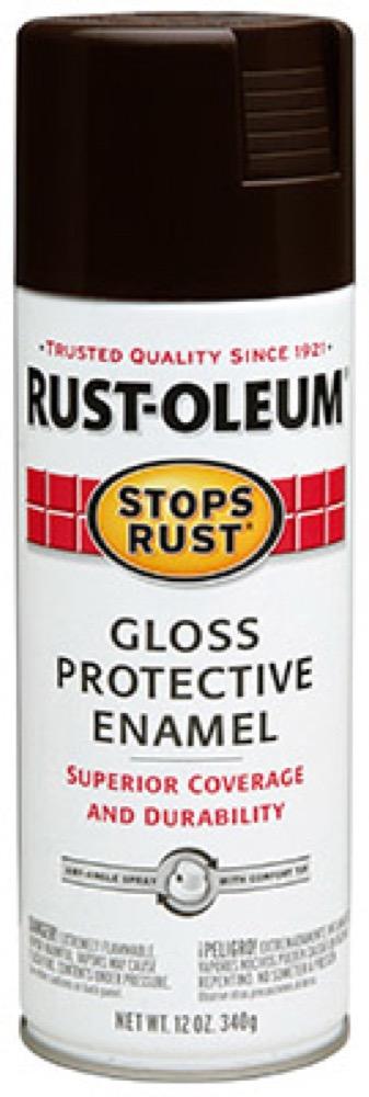 Stops Rust, 12 OZ, Gloss Dark Walnut Spray Enamel, VOC Compliant.