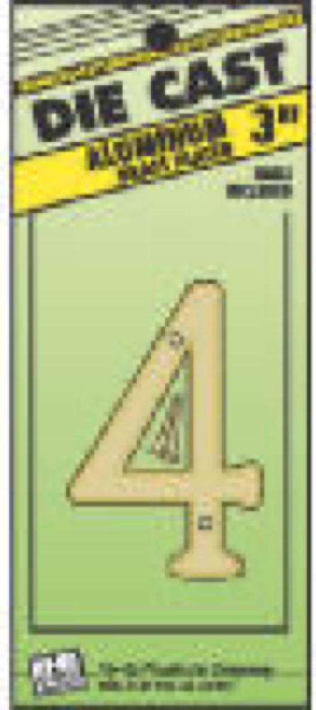 3", Brass Plated, Die Cast Number 4, Includes Mounting Nails.