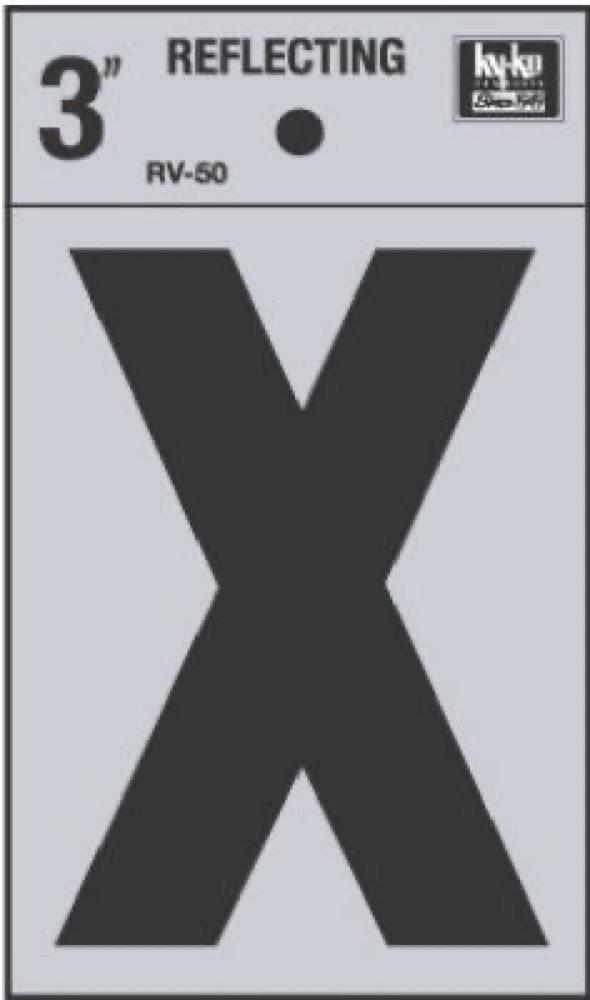 3", Black Reflective, Vinyl Adhesive, Letter X, Silver Background.