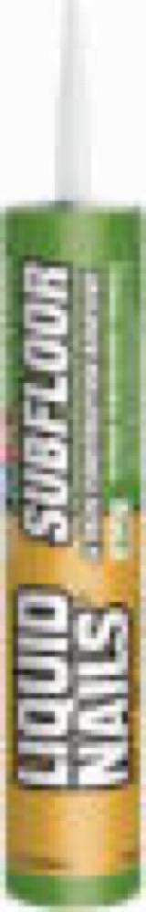Liquid Nails, 28 OZ, Heavy Duty Sub-Floor Adhesive, Superior Quality Exterior & Interior Latex Based Adhesive For Sub-Floors & Most Other Common Building Materials, Bonds Wet Or Frozen Lumber & Bridges Gaps Up To 3/8", Suitable For Use With Foam Board, Contains No Solvents That Could Attack Foam, Recommended For Plywood, Wafer Board, Lumber & Treated Lumber, Particleboard & Foam Board, VOC Compliant, Replaces True Value #284-455 For Members In VOC Restricted Areas.