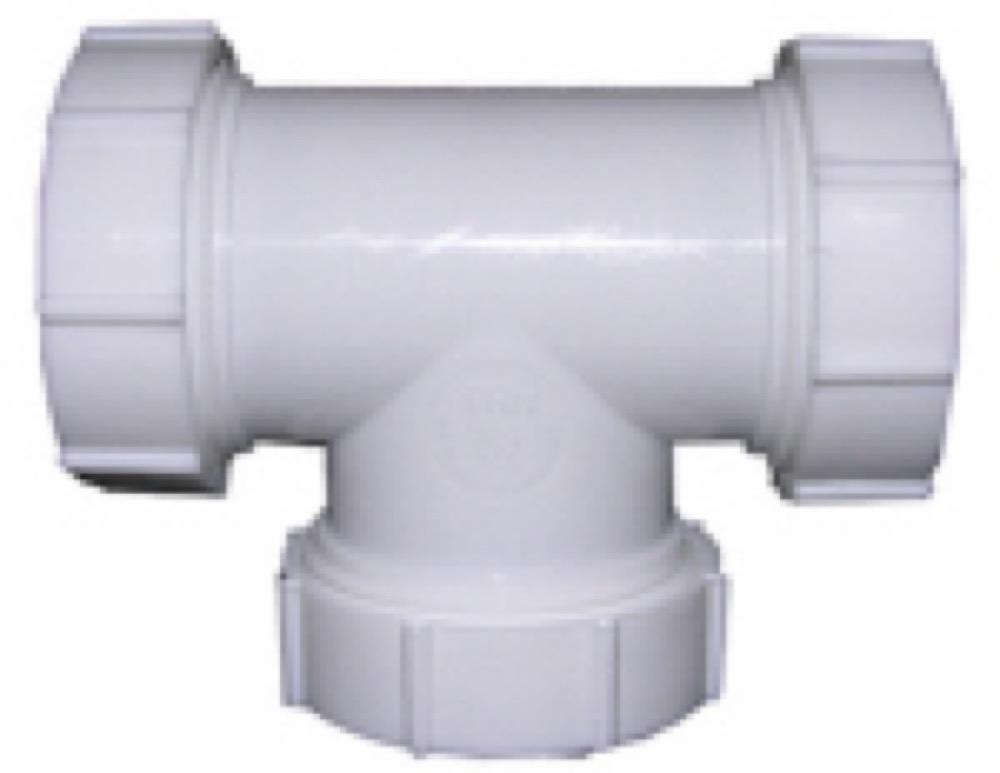 1-1/4" Or 1-1/2" O.D. Tube All 3 Ends, White, PVC Lavatory/Kitchen Drain Tee, Includes 3 Each Nuts & Washers, Carded.