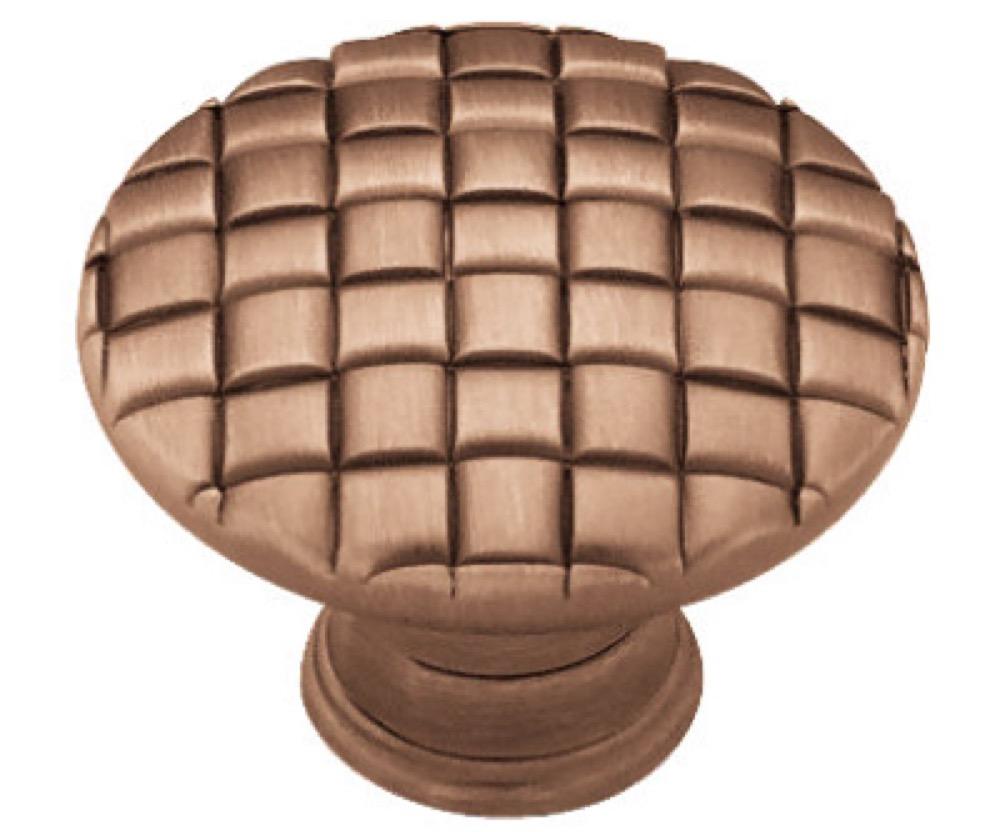 1-1/8", Red Antique Low Sheen Finish, Basket Weave, Cabinet Hardware Knob, Poly Bag.