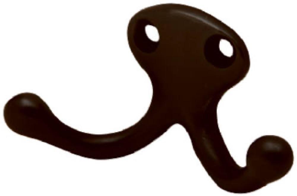 1-1/8" Projection, Aged Bronze, Double Wardrobe Hook, Bulk.