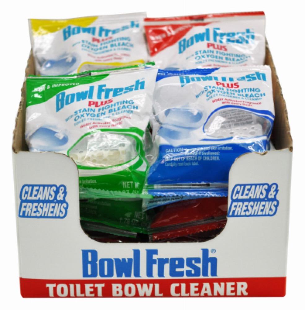 1.76 OZ, Bowl Fresh Plus, Powerful Water Activated Fragrance That Freshens The Bathroom With Every Flush, New & Improved Cage Design Allows For More Directed Water Flow, Compact Hanger With Complete Coverage Wrapper, Made With Natural PP Plastic To Blend Better In Toilet Environment, Cleans With Oxygen Bleach & Detergents, Pleasantly Scented Deodorizer, Easy To Use, Hangs On Toilet Rim, Contains No Phosphates.