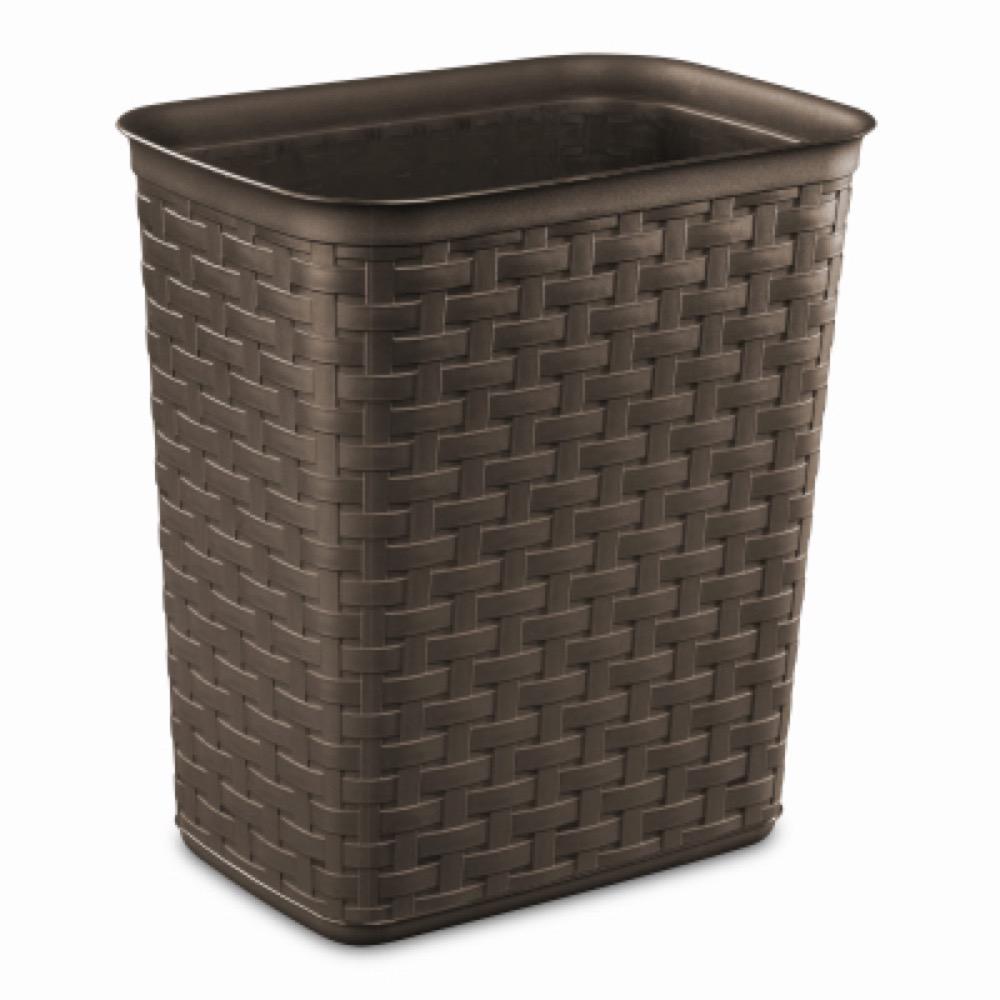 3.4 Gallon, 13 Liter, Brown With Weave Pattern Trash Can, Modern Styling Makes This Wastebasket Ideal For Visible Areas, Sleek Profile & Space Efficient Shape Easily Fits Into Small Spaces, Easy To Clean Surface Is Ideal For Use In Any Room, Waste Basket Accommodates Standard Sized Trash Liners, Item Dimensions: 11-1/2"L x 8"W x 13"H.
