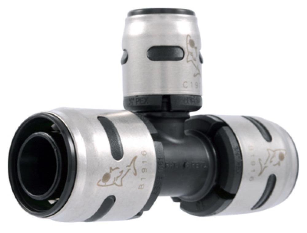 3/4" x 3/4" x 1/2", Evopex Push To Connect Tee, Fast & Easy Way To Connect Pipe Without The Need For Special Tools, Glue Or Soldering, 200 Degrees Fahrenheit, 160 PSI Maximum Pressure, Lead Free, Pex Compatible Pipe Material, For Water Supply, Bagged.