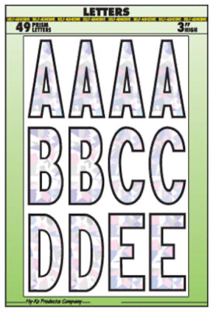 3", Prism Silver Background Prism Letter Set, Vinyl Adhesive, Various Quantities By Character.