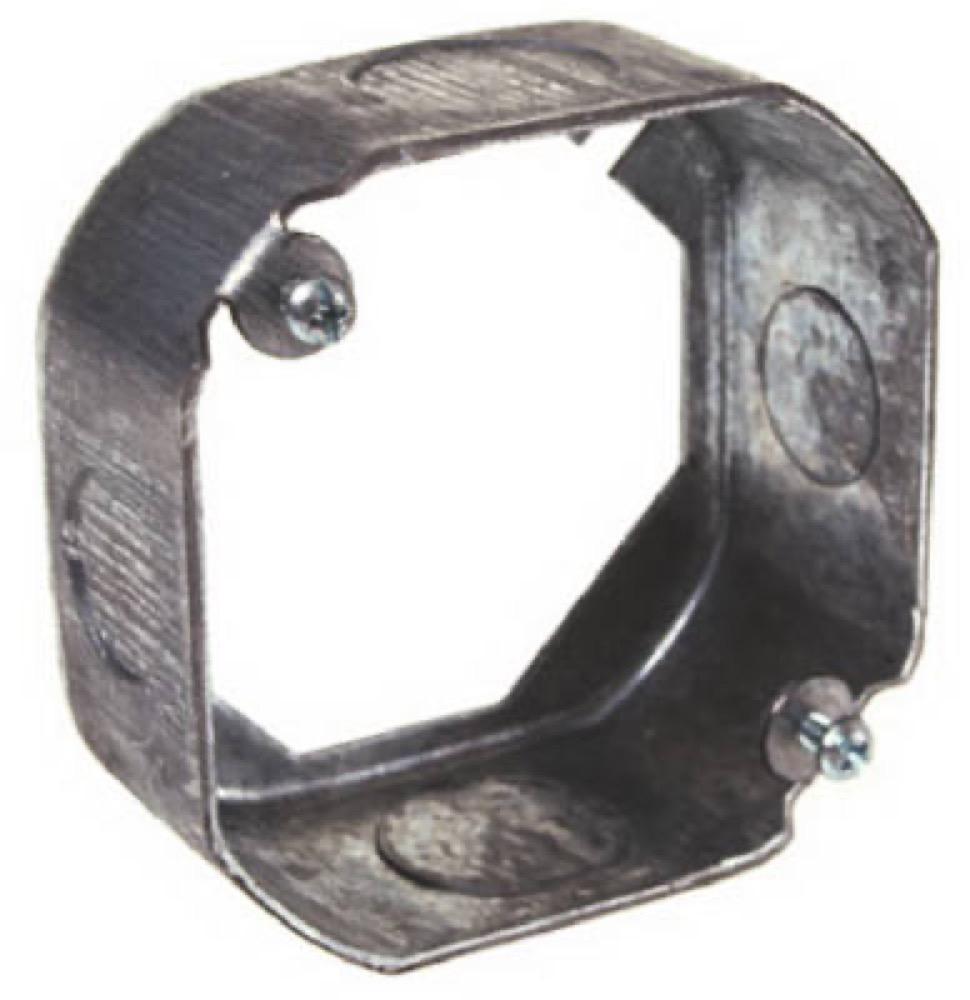 4" x 1-1/2" Deep Octagon Extension Ring, Steel, 2 Each 1/2" & 2 Each 3/4" Knockouts, 16-1/2 CUIN.