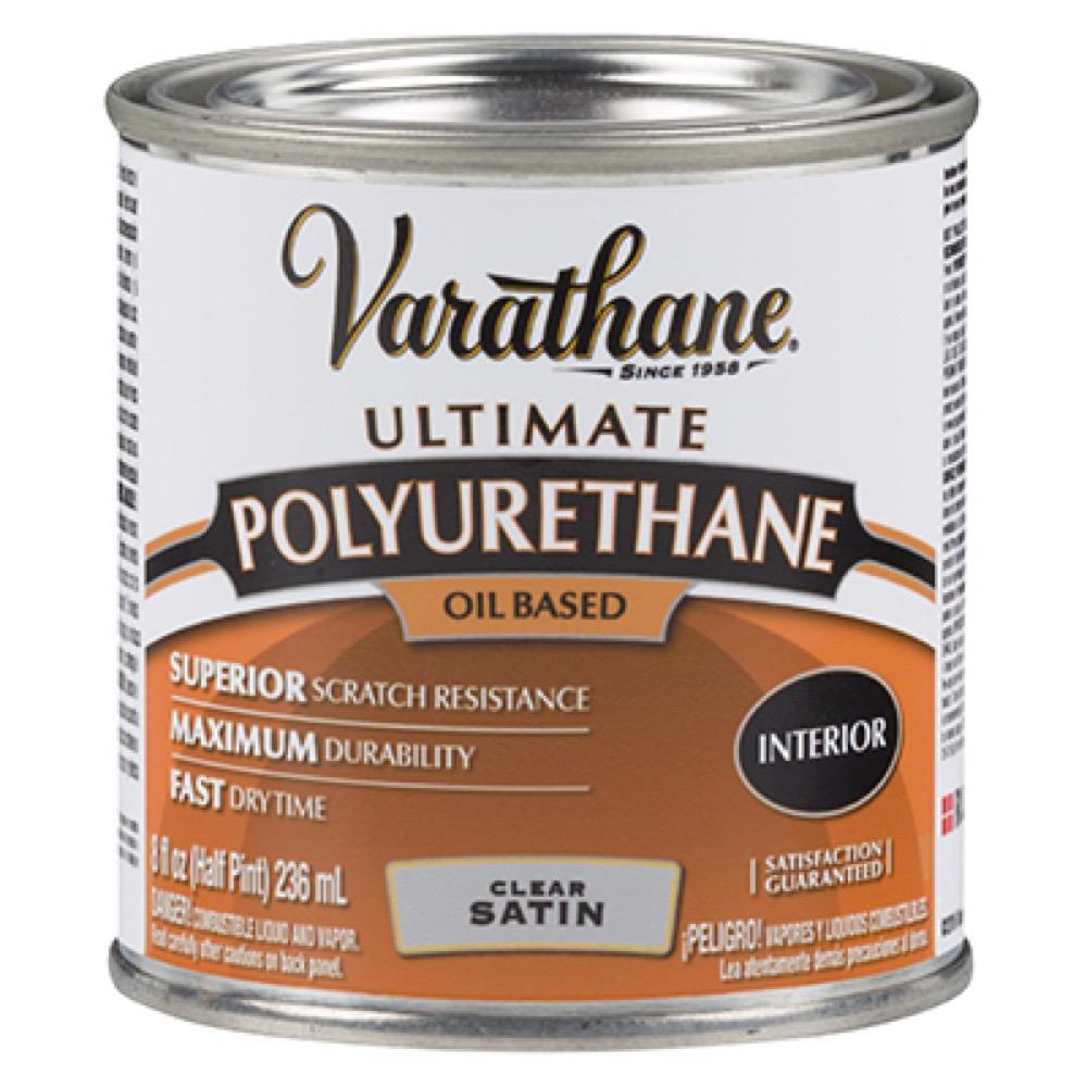 Varathane, 1/2 PT, Clear Satin, Interior Oil-Based Premium Polyurethane Wood Finish, Beautifies & Protects All Types Of Wood, Fast Dry, 275 VOC, Replaces, True Value #191-734 For South Coast Counties, CA.