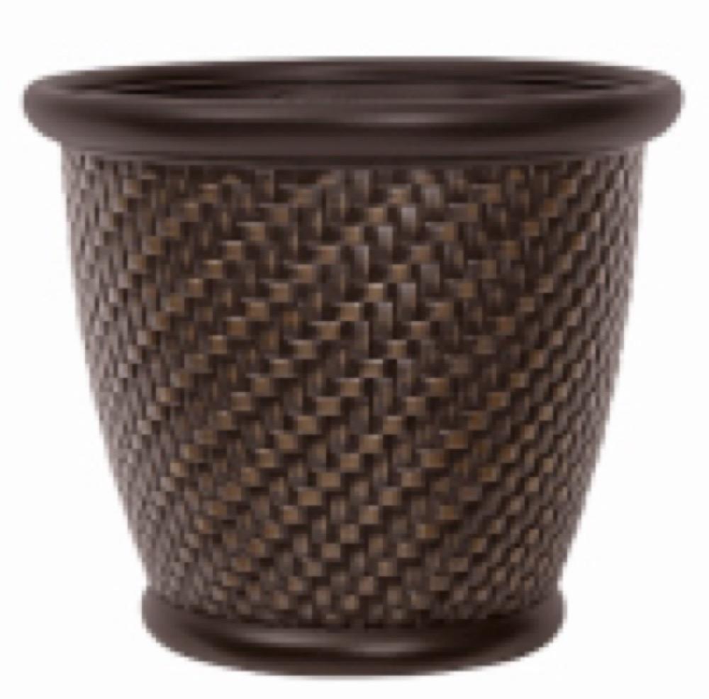 18"D x 16.5"H, Contemporary Herringbone, Blow Molded Resin Planter, Dark Brown With Bronze Shaded Wicker, Complements Wicker Look Outdoor Accessories, Deck Boxes & Hose Reels, Outdoor Or Indoor Use, Lightweight, Easy To Handle.