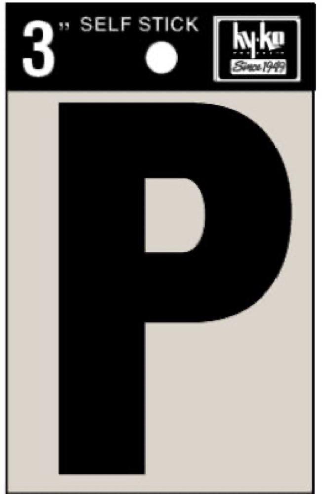 3", Black, Adhesive Vinyl Die Cut Letter P.