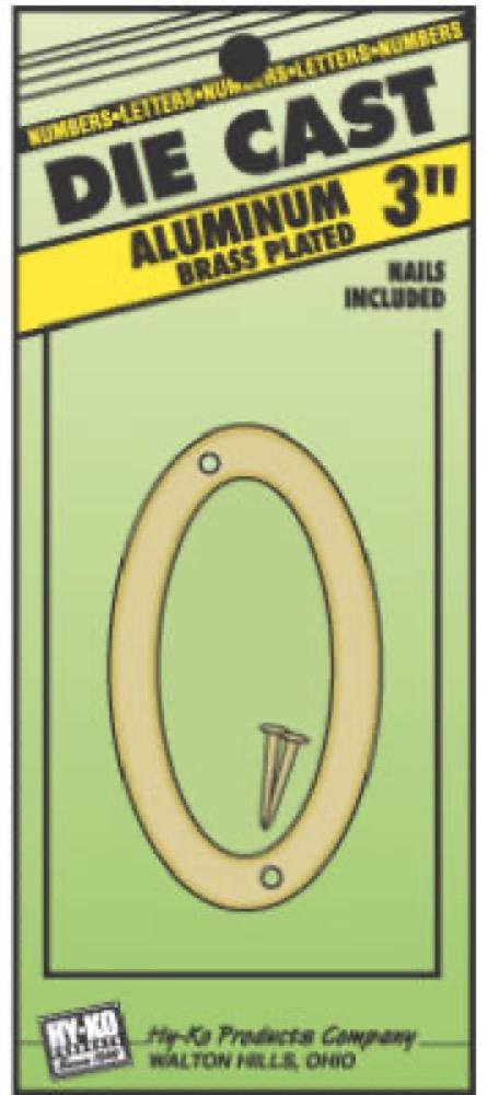 3", Brass Plated, Die Cast Number 0, Includes Mounting Nails.