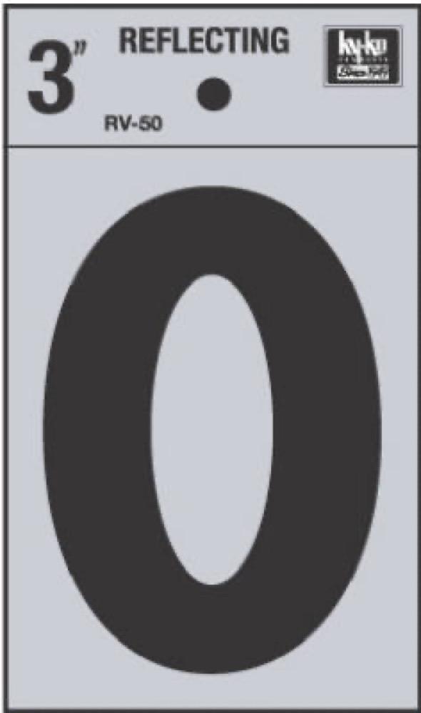 3", Black Reflective, Vinyl Adhesive, Number 0, Silver Background.