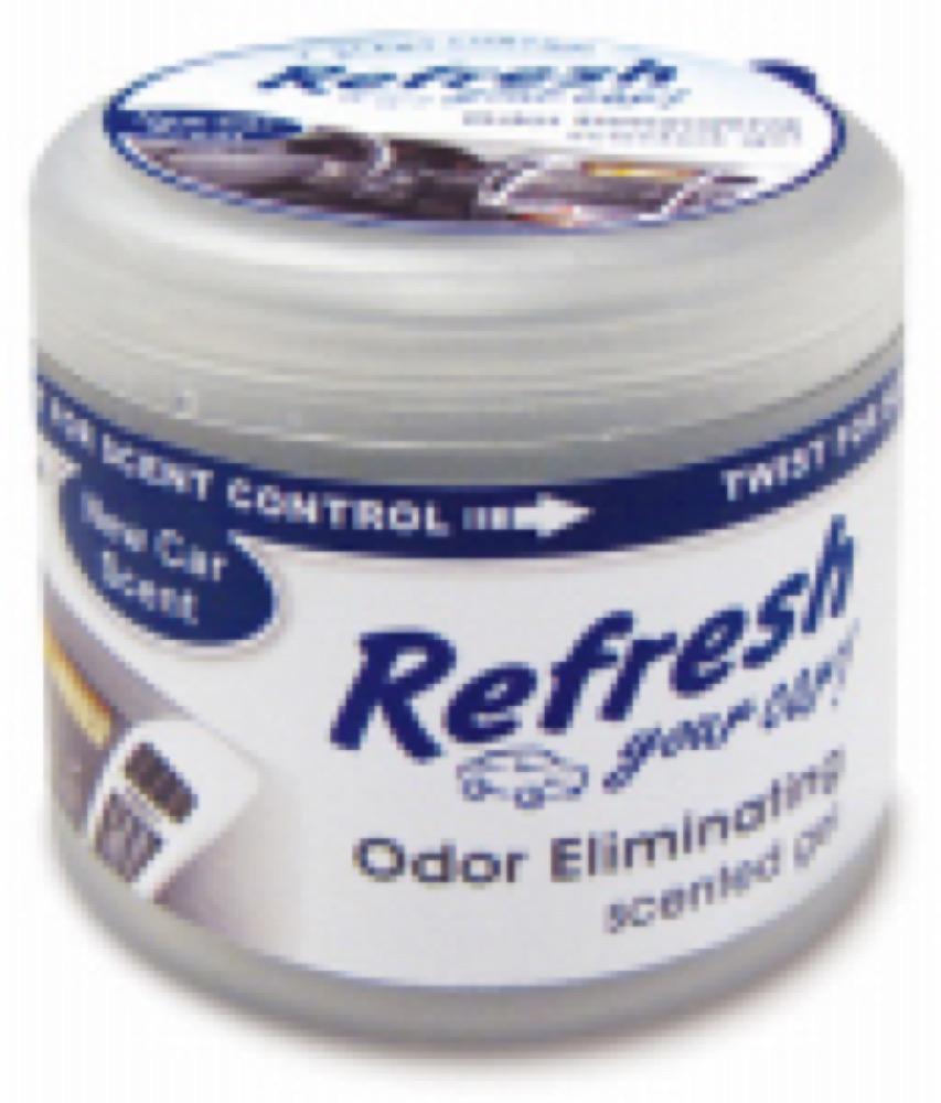 Refresh, 4.5 OZ, New Car, Air Freshener Gel, Eliminate Orders In Your Car, Simply Place On Any Horizontal Surface, & Watch As The Bad Odors Are Completely Eliminated & Replaced With The Soft Scents.