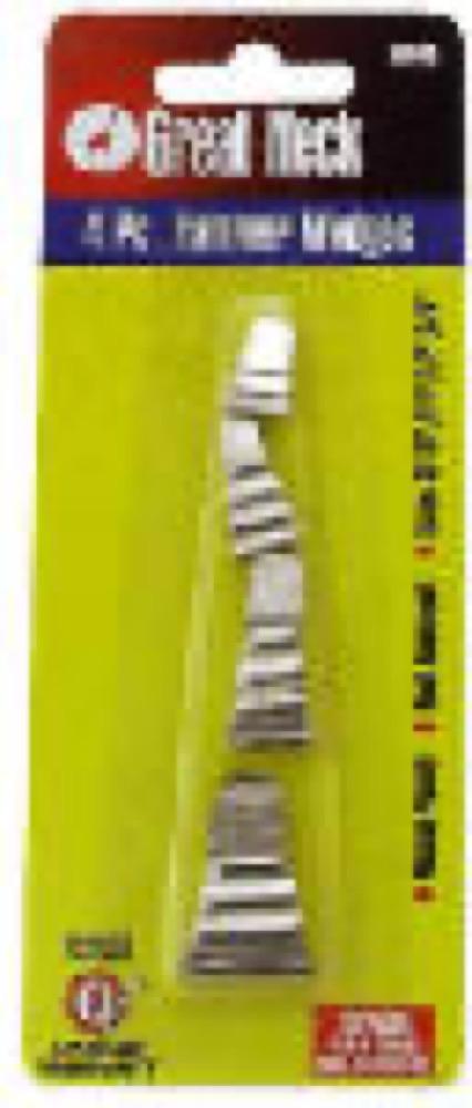 4 Pack, Hammer & Axe Wedges, Includes 1 Each 1/4", 5/16", 1/2" & 3/4", Nickel Plated, Carded.