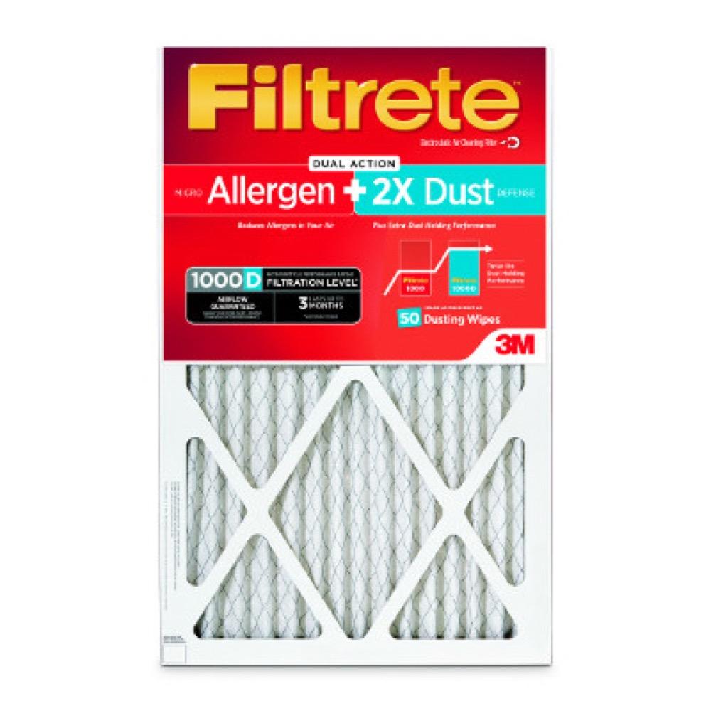 16" x 25" x 1", Filtrete Dual Action Allergen + Dust Filter, Attracts & Captures Microscopic Allergens Like Smoke & Smog Particles, & Large Allergens Like Mold Spores & Pollen, With Enhanced Dust Trapping Technology, For Residential Use Only.