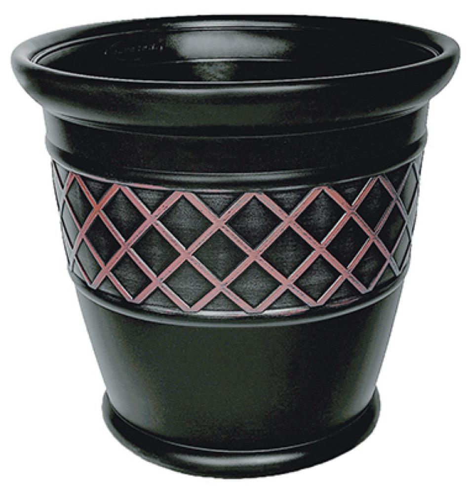 18"D x 16.5"H, Brown, Contemporary, Blow Molded Resin Planter, Painted Bronze Lattice Design Enhances Appearance, Outdoor Or Indoor Use, Lightweight, Easy To Handle.