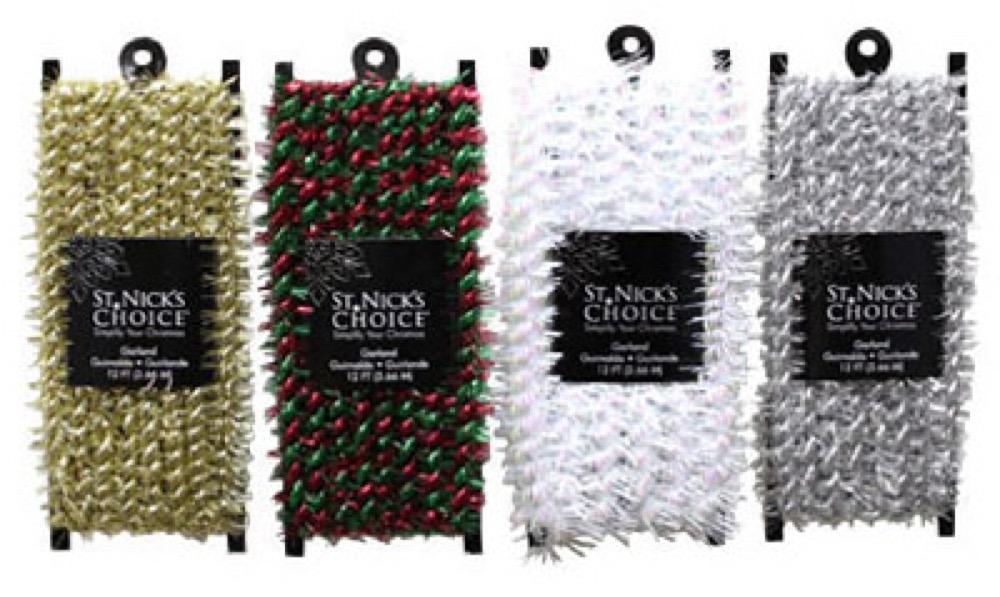 18, Mini Marabou Tinsel Garland, Assorted, 4 Styles, Silver, White, Gold & Multi Color. Use On Mini Trees & Wreaths, Wrapped On Peggable Backer Card.