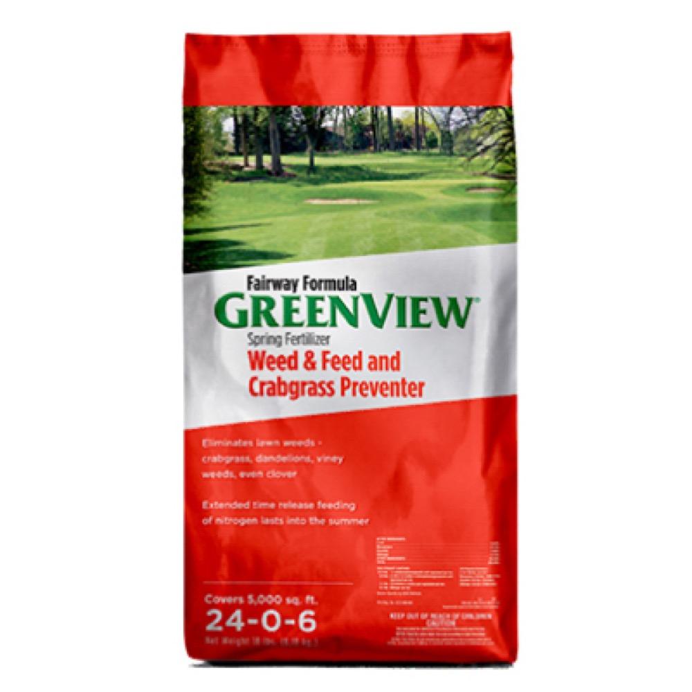 Greenview, 18 LB, 5,000 SQFT Coverage, Spring Weed & Crabgrass Preventer, O Phosphate, Kills More Than 200 Weeds, Prevents Crabgrass & Destroys It Up To 4 Weeks After Germination, 65% Slow Release Nitrogen, Continuous Nitrogen Feeding For Up To 12 Weeks, Triple Action Formula, Pre & Post Emergent Crabgrass Control & Post Emergent Broadleaf Weed Killer, Contains Dimension/Trimec, Bag.