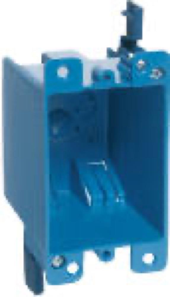 Single Gang, Old Work Box, 4-1/8" x 2-1/4" x 2-3/4" Deep, Blue PVC, 4 Integral Clamps, 2 Each End, 2 Plaster Zip Mount Retainers, 14 CUIN.