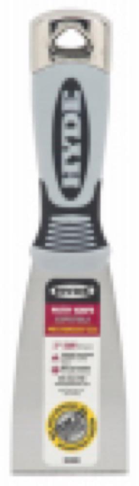 Hyde Pro, 2", Stiff, Stainless Steel, Putty Knife, 2" Stiff Blade, Use For Applying Compounds & Filling Holes & Cracks, High Carbon Stainless Steel Blade Is Tempered & Satin Finished, Solvent Resistant Nylon Handle.