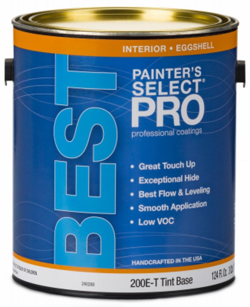 200E-T, Painters Select Pro, Best, Gallon, Tint Base, Interior Latex Eggshell Wall Paint, Exceptional Durability With Excellent Hide & Touchup, Mold & Mildew Resistant, Apply With Brush, Roller Or Sprayer, Ideal For Walls & Ceilings, Easy Soap & Water Clean Up, Low VOC Less Than 5 Grams Per Litre.