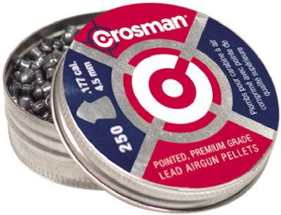 Crosman, 250 Count, 177 Cal. Pointed Pellets, Pointed For Greater Penetration & Field Use, In A Tin, Blister Carded.