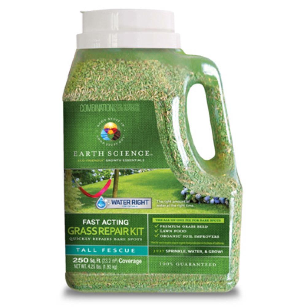 Earth Science, 4.25 LB, 250 SQFT Coverage, Southern, Sun & Shade, Triple Fescue Grass Repair Kit, Easily Fix Bare Or Damaged Areas Of Your Lawn With 1 Application, Contains Combination Grass Seed, Dairy Manure Granules, & Fertilizer, Nutri-Lock Technology Holds Nutrients In Place For Maximum Effectiveness & Helps Reduce Nutrient Run Off Up To 75%, Water Right Technology Signals Homeowner When To Water, Jug.