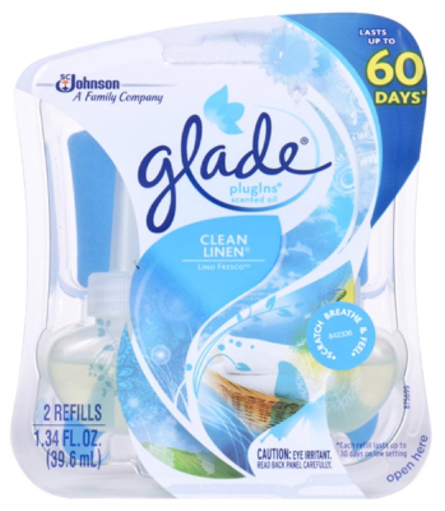 Glade Plug-Ins, 2 Count, Clean Linen Scent Oil Refill, Can Be Used With Glade Plug-In Scented Oil Warmer & Refill Starter Kit, TV #148-729.
