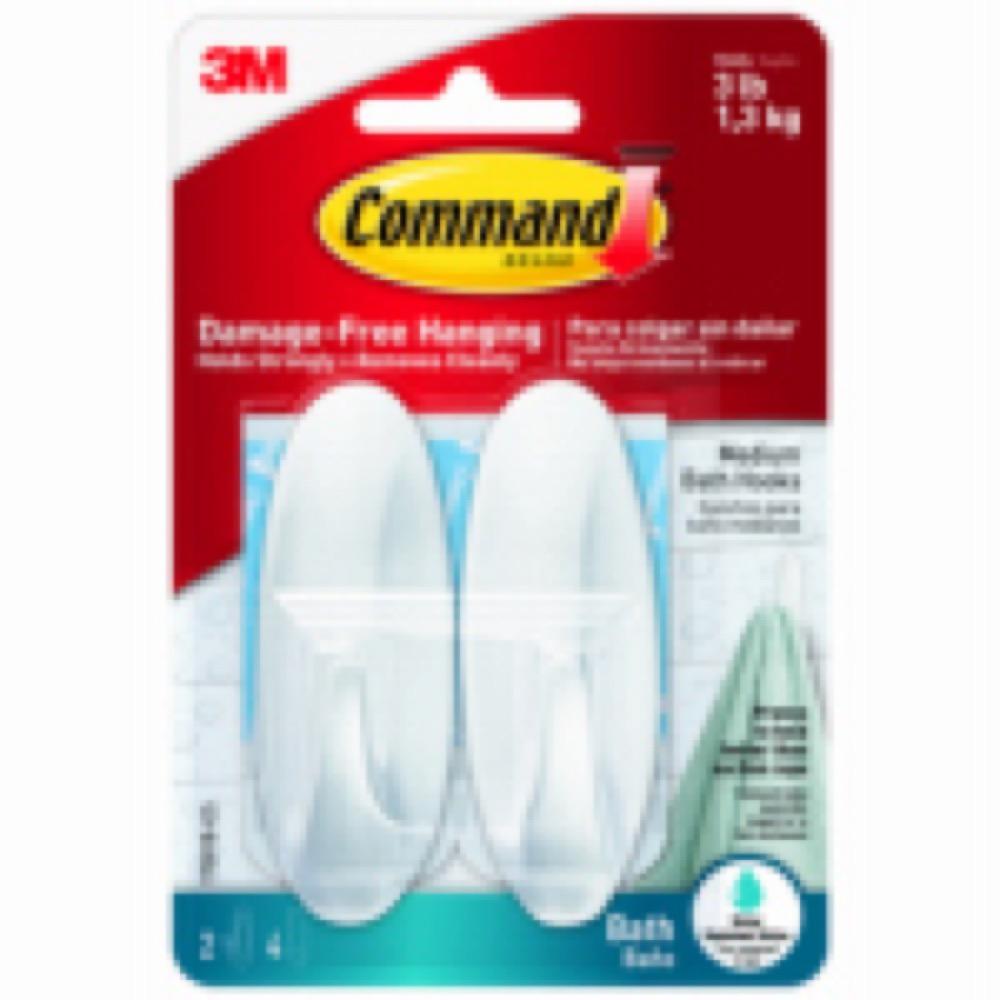 Command, 2 Count, Medium Bath Designer Hooks, Mounting Solution That Holds Firmly & Removes Cleanly, Command Strips & Medium Hooks #17608B, Water Resistant Strips, Contains 2 Hooks & 4 Strips.