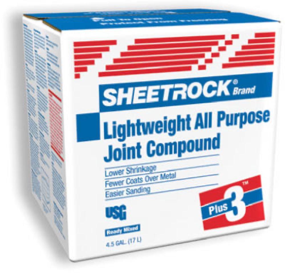 4.5 Gallon Carton, Plus 3, Lightweight, Ready Mix, Wallboard Joint Compound, UPC: 0 81099 20456 2.