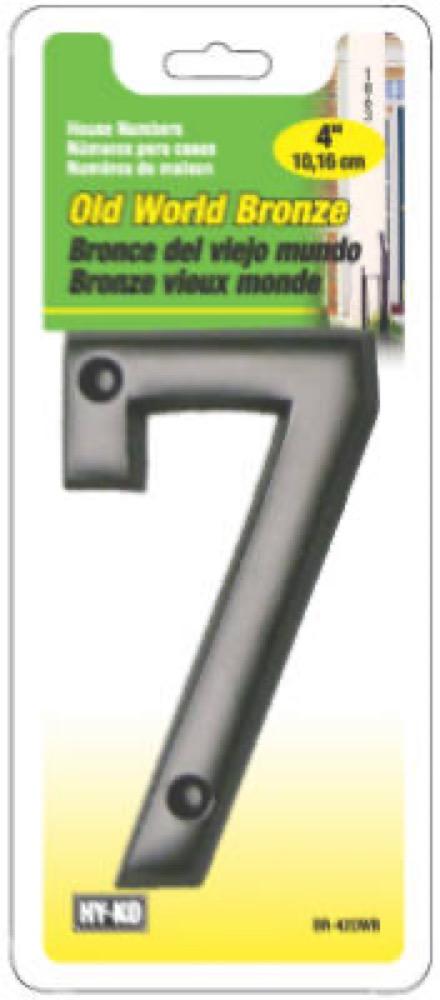 4", Bronze Finish, Old World Prestige Series, House Number 7, Weather Resistant, Easily Screws Into Mounting Surface Mounting Screws Included Or Use With Hy Ko Prestige Series Plaques, Individually Packaged.
