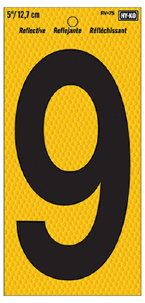 5", Black Number On Yellow, Reflective Background, Number 9, Can Be Used On Mailbox Or Post For High Visibility At Night Or In Bad Weather, Adhesive Vinyl Material For Easy Mounting, Weather Resistant & Durable.